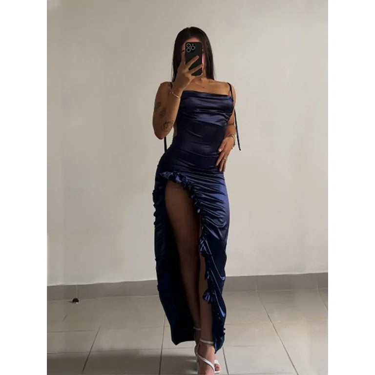 Channel the fierce energy of the Y2K era with this sexy halter dress. Its daring design and unique cut will make you the center of attention wherever you go, from summer parties to upscale events.